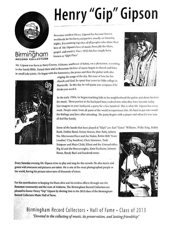 Scroll Down For A Brief BIO of Mr. Henry "Gip" Gipson
